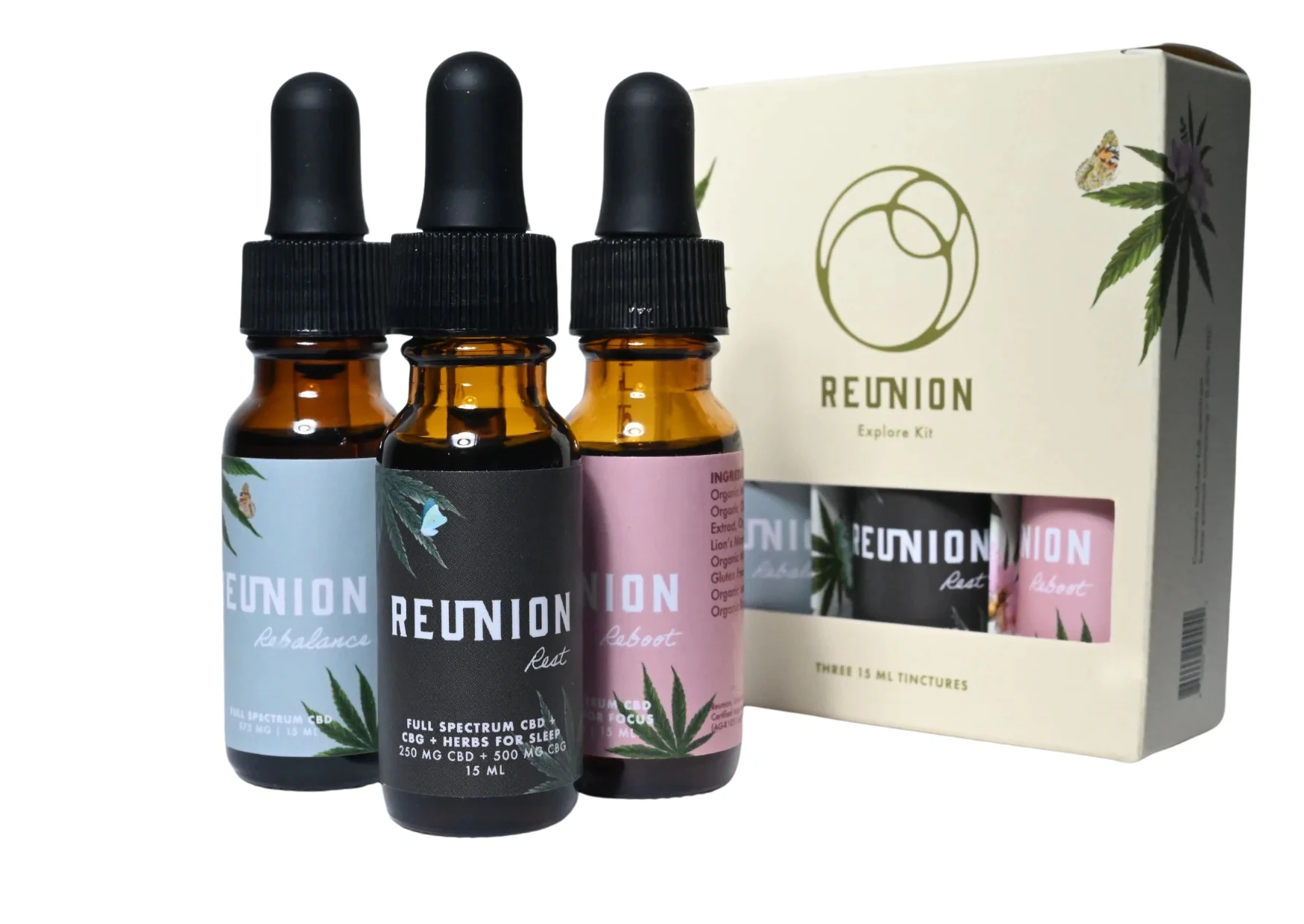 Try all three moods within the Reunion CBD family: Rest, Reboot, and Rebalance.